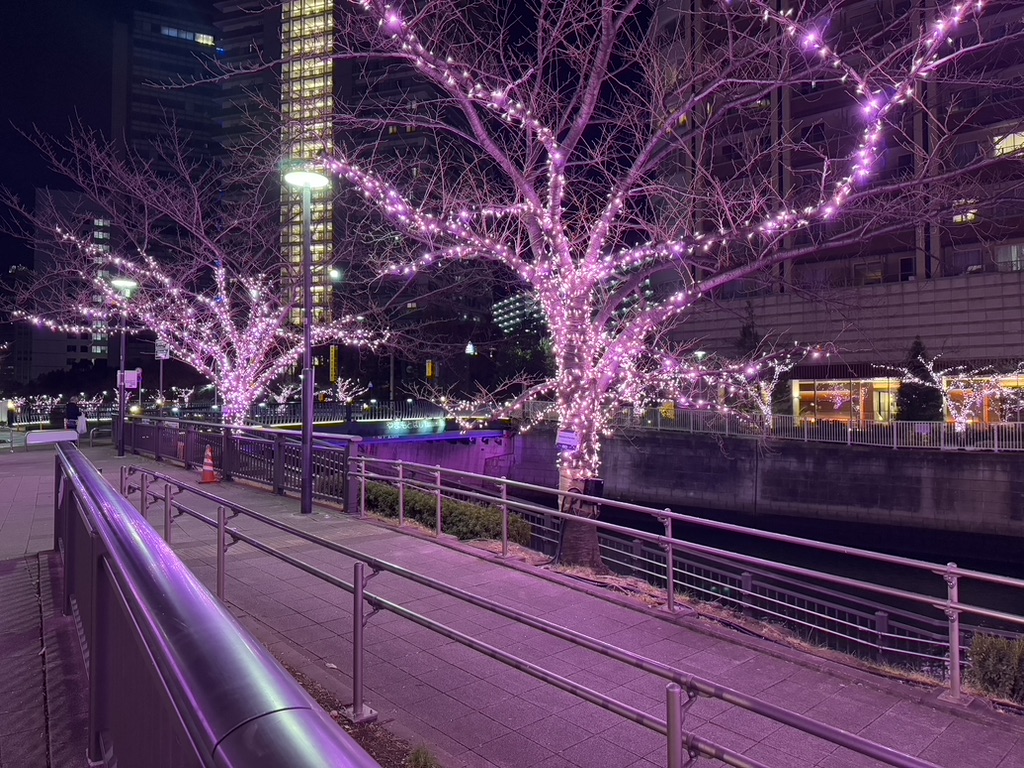 호텔 주변을 산책하다가 우연히 메구로강을 발견했습니다. 계획에 없던 일정이었지만, 겨울 밤의 일루미네이션이 반짝이며 강을 물들이는 장면은 도시 속에서 만난 환상적인 풍경이었습니다. 봄에는 벚꽃으로 유명한 장소이지만, 겨울의 빛으로 가득 찬 메구로강 또한 잊을 수 없는 경험이 되었습니다.