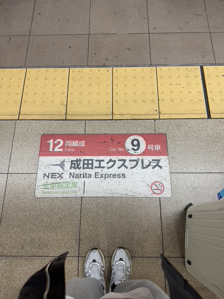 나리타공항에서 도쿄 도심으로는 나리타 익스프레스(N'EX)를 이용했습니다. 클룩(Klook) 앱을 통해 1인 28,800원에 예약했고, 공항 내 발권기를 통해 간단히 티켓을 수령했습니다. 처음에는 ‘넥스? 익스프레스?’ 헷갈렸지만 결국 같은 말이라는 걸 알게 되었고, 기차여행의 분위기를 만끽하며 도쿄 중심으로 이동할 수 있었습니다.